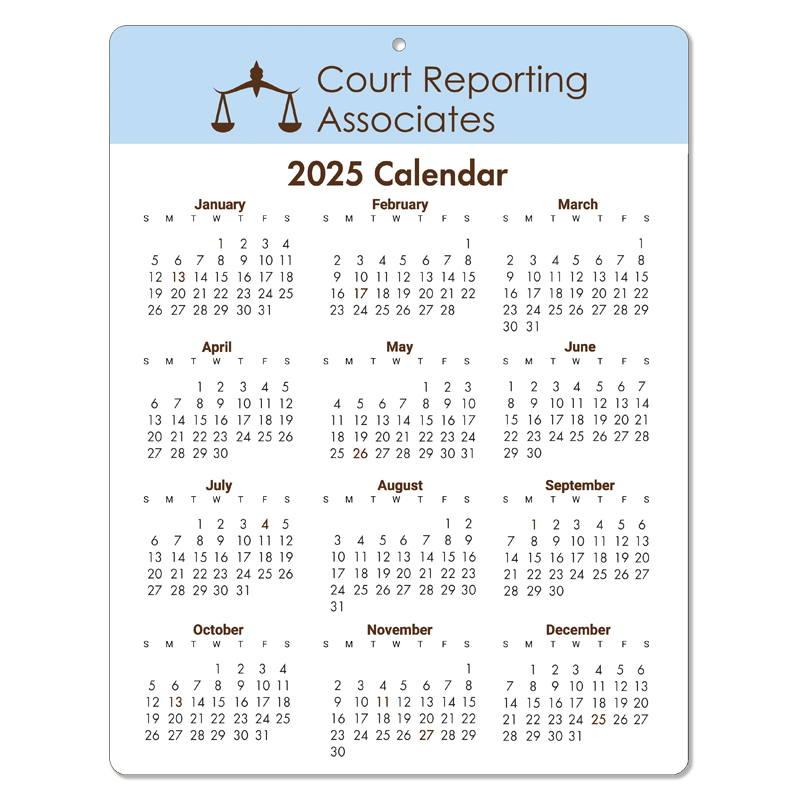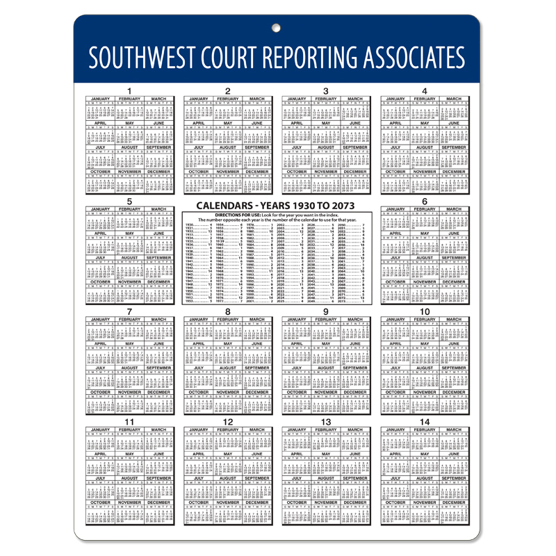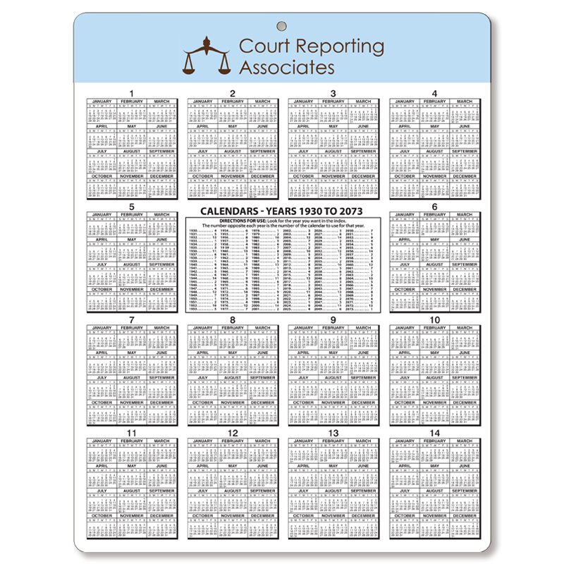 Are you planning 2 plus years out? Our Perpetual Wall Calendar (with newly designed calendar) is just for you! Current year on front along with an imprint. 14 calendars on the backside along with the code, plus imprint area. Perfect for Court Reporters, Engineers, Manufacturing, etc.