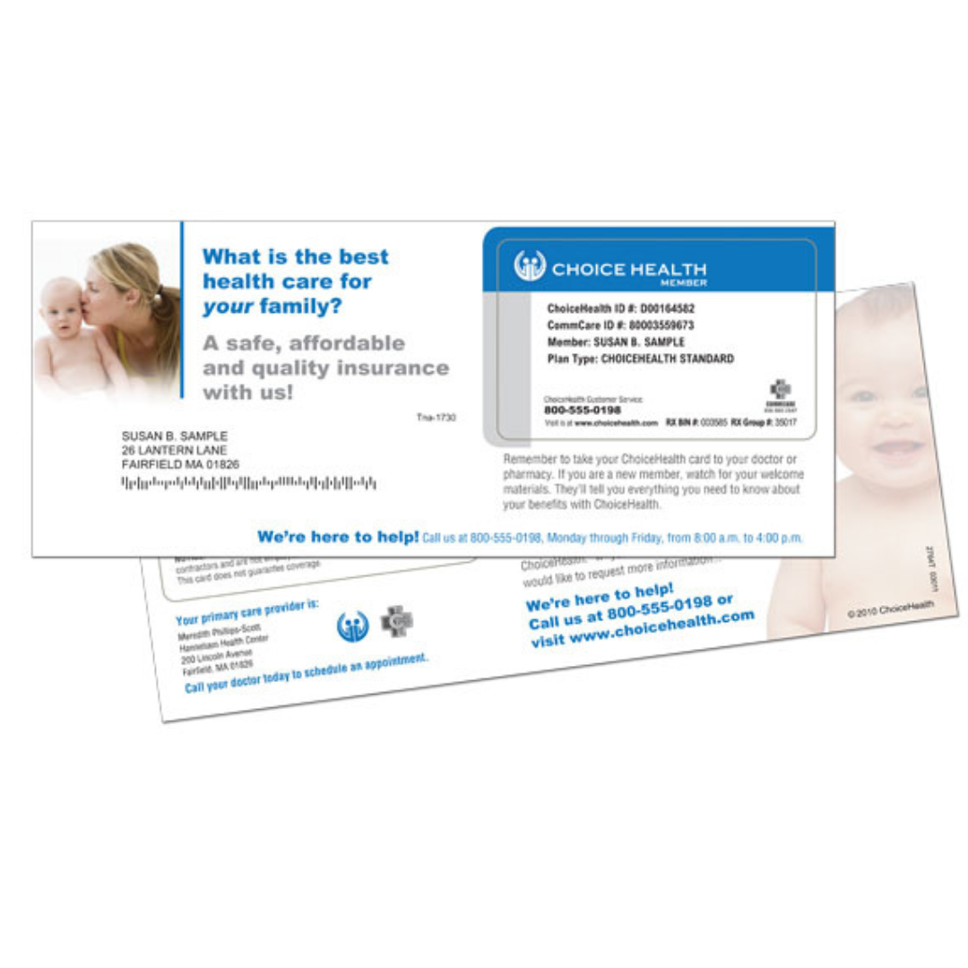 Designed for a #10 window envelope. This item includes a card and a key tag of which, both can have variable data (supplied on an excel file). We can handle the entire project - plastic right up to the post office - or just the plastic and personalizing!