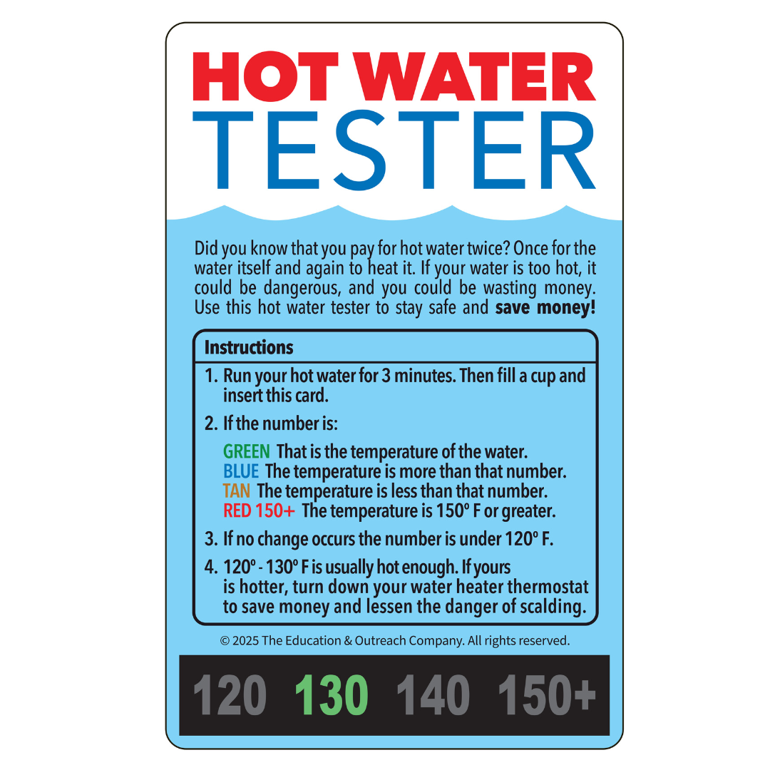 Great energy conservation item. Monitoring hot water tanks with this card will enable us to keep our hot water setting at the suggested 120 degrees. Not only will this reduce the risk of scalding but it will also save money. The thicker, laminated card creates a durable and higher perceived piece. The stock temperature strip included. See the art template based on our stock design. Custom Designs are available for the same price and same production time but the artwork is required.