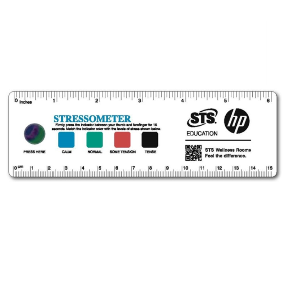 This Stress Ruler is wide and perfect for your client's large logo. This ruler combines 2 items into one - a ruler and a stress card. Custom designs do not affect production time or pricing (as long as complete camera ready artwork is supplied). Includes standard size crystal. This stress ruler is handed out at health fairs - events in general - as it offers business card retention and is an ice breaker.
