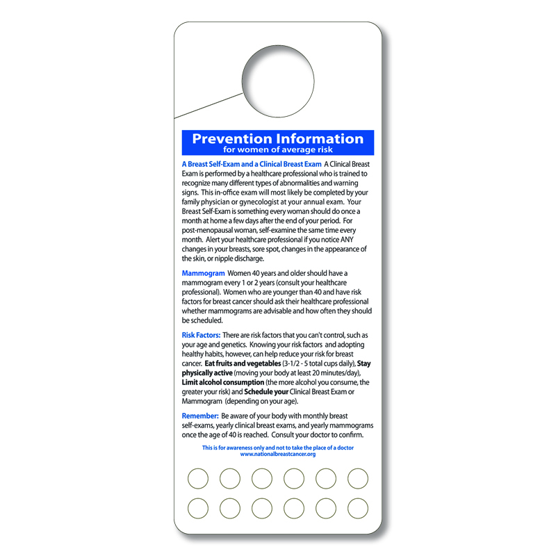 BSE10-PO - Breast Self Exam Hanger With Punch Out Months