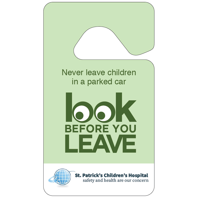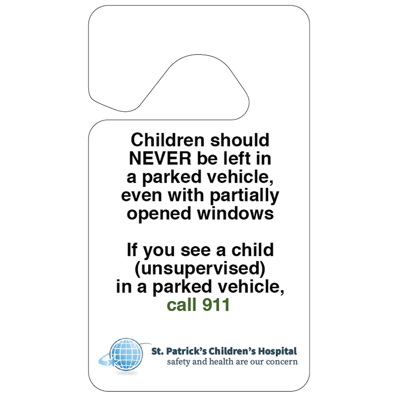 The Hang Tag serves as a reminder that there is a child in the back seat. Police, Health Fairs, Community Events, Pediatric wings of the hospital, Insurance Companies and more see the validity of this piece. The rear view mirror tag, not only reminds the driver, but also alerts pedestrians to call 911 if a child in left in the car alone. See template for imprint areas. For additional safety information, see item LBL30-TIP and LBL30-COMBO. This can be altered for elderly and pets.