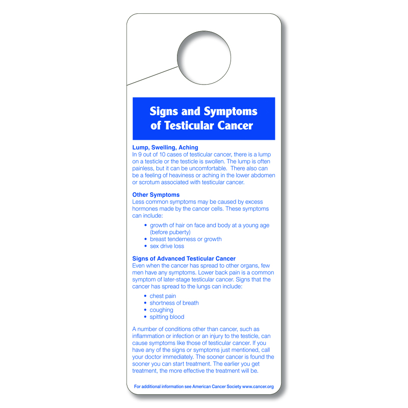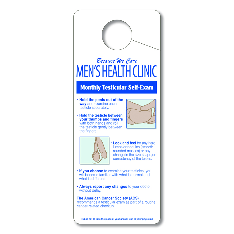 Promote health awareness with this practical and informative tool. The durable vinyl Testicular Self-Exam Card and Preventative Hang Tag are designed for easy reference and awareness.