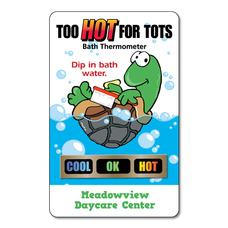 New Turtle Design! Tommy Turtle Tub Tester Card is a stock-designed tub temperature tester with a stock temperature strip. Use this card in combination with the elbow test. No batteries or power are required. The thermo strip detects the temperature, and there are three easy-to-use temperature ranges. It is great for at-home use, pediatricians, preschools, midwives, hospitals, and daycare facilities.