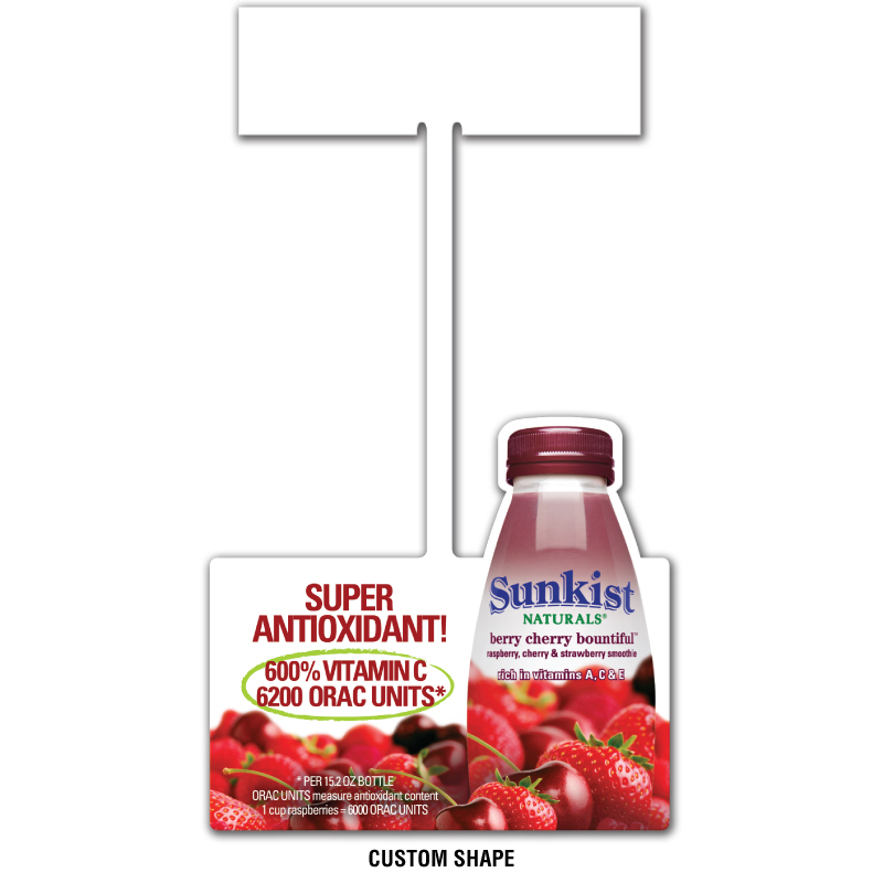 Shelf Danglers bounce around with the air movement causing attention. Custom shapes and clear material available. 2 stock shapes; round base and square base. Contact factory for additional information.