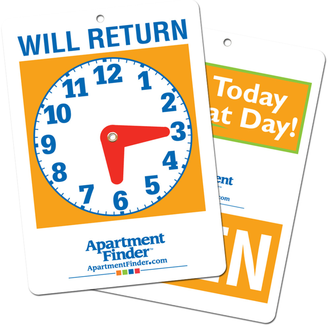 Open/Close Clock: One side displays large imprint with "OPEN" and the other side displays a clock with movable hands to indicate when the store will reopen. Imprint on this side also! Any retail door plus motels and other hospitality chain store fronts. Stock hands are red. For one color pricing, stock, imprint and stock information need to be in the one same color.