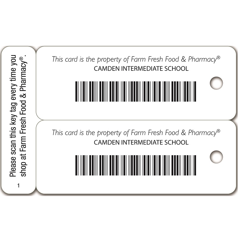 A laminated .030 plastic double key tag (two in one) can be bar-coded for tracking purposes. Other uses are ID, discount, reward, or backpack tags. Vinyl key tags can be an alternative to plastic cards for those with slashed budgets. Signature panels and scratch-off panels are additional. All printing/personalization is over-laminated for maximum durability.