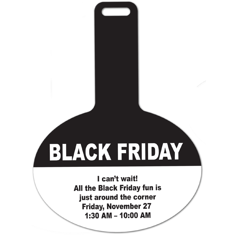 Thin, flexible Badge Mates (UV coated) reminding the public of an up-coming or on-going event, such as Black Friday, Holiday Specials, etc. This inexpensive badge goes behind the ID badge and drops below the ID badge for visibility.